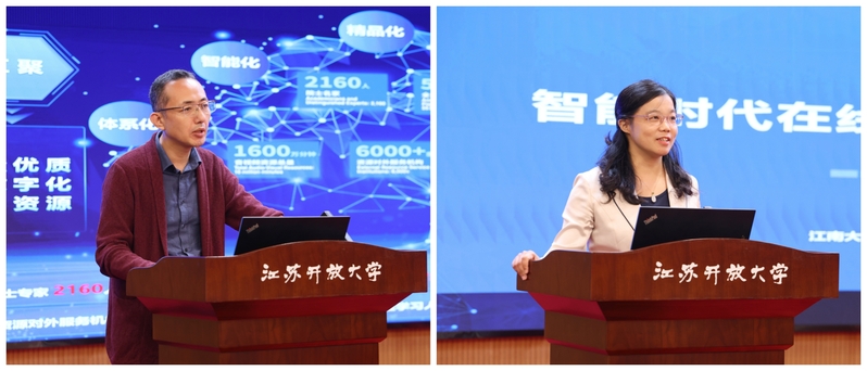 在主旨报告环节,国家开放大学数字化学习资源中心主任张暾和江南大学教授、博士生导师王志军分别以《数智环境下课程资源建设的思考与实践》和《智能时代在线课程设计与开发》为题做专题报告。我校信息工程学院刘国亮博士、艺术学院孙琛博士分别分享了“博士微课堂”优秀微课的创作经验。