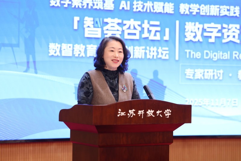 陈丽教授在线上致辞中表示,中国教育技术协会作为我国教育数字化领域唯一的国家一级协会,将支持江苏开放大学在数字资源建设领域的研究、应用与实践探索。她代表协会对“智荟杏坛”的启幕表示热烈祝贺,并提出了三点希望:一是坚持育人为本,不断以新的理念和理论武装教师队伍;二是抓住智能转型机遇,赋能教师人工智能素养;三是坚持开放融合,整合多方力量推动协同创新,利用信息技术开辟教育发展新赛道。她相信,江苏开放大学的创新实践必将持续走在全国前列。