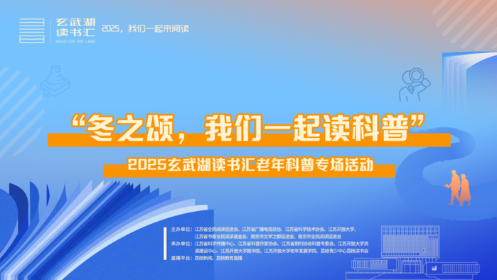 12月18日下午,2025“玄武湖读书汇”——“冬之颂·我们一起读科普”老年科普专场活动在二楼报告厅成功举办。本次活动由江苏开放大学联合江苏省全民阅读促进会、江苏省广播电视总台、江苏省科学技术协会等六家单位共同主办。江苏开放大学党委常委、副校长罗逾兰,江苏开放大学党委常委、副校长杨羽,江苏省全民阅读促进会会长韩松林,江苏省书香全民阅读基金会理事长汪维宏等领导出席活动。